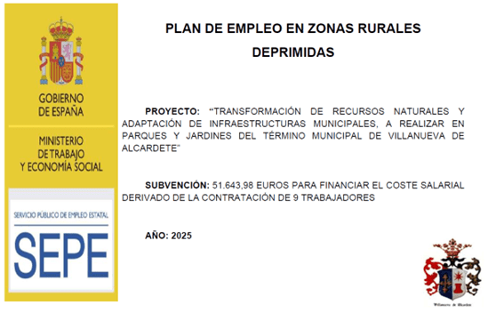 General Anuncio selección provisional de personal ZRD proyecto “Transformación de recursos naturales y adaptación de infraestructuras municipales, a realizar en parques y jardines del término municipal de Villanueva de Alcardete” 20 octubre, 2025