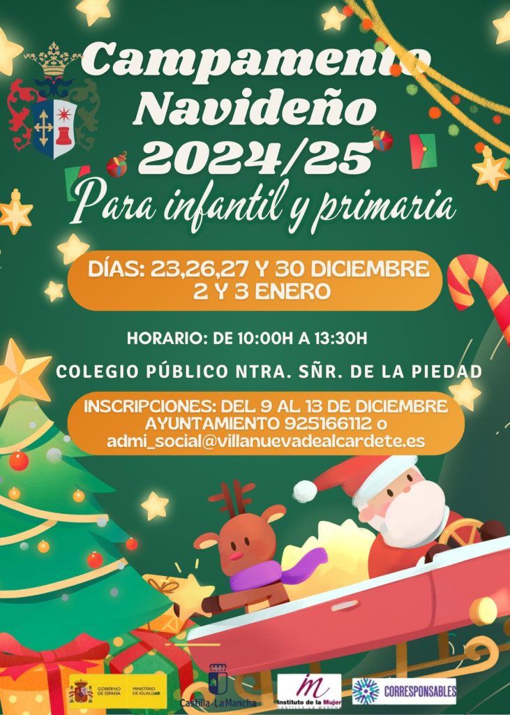 Inscripciones del 9 al 13 de diciembre en el Ayuntamiento 925166112 o al email admi_social@villanuevadealcardete.es.