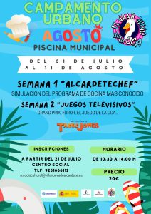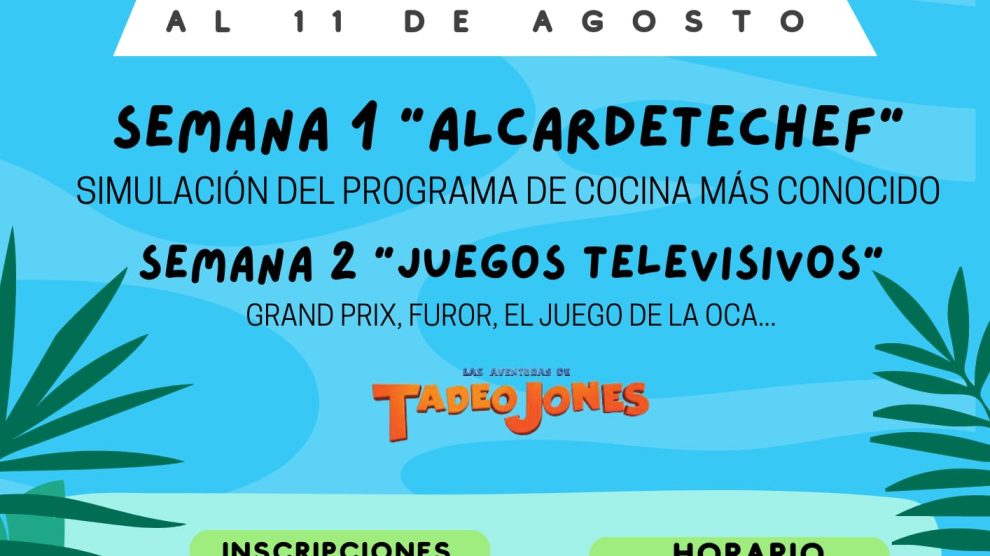 Campamento urbano del 31 de julio al 11 de agosto en horario de 10:30 al 14:00h, precio 20 €.