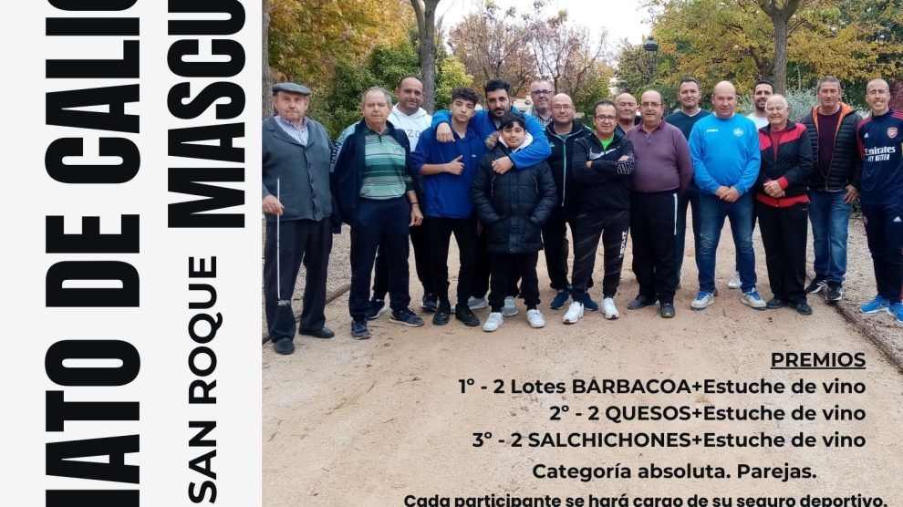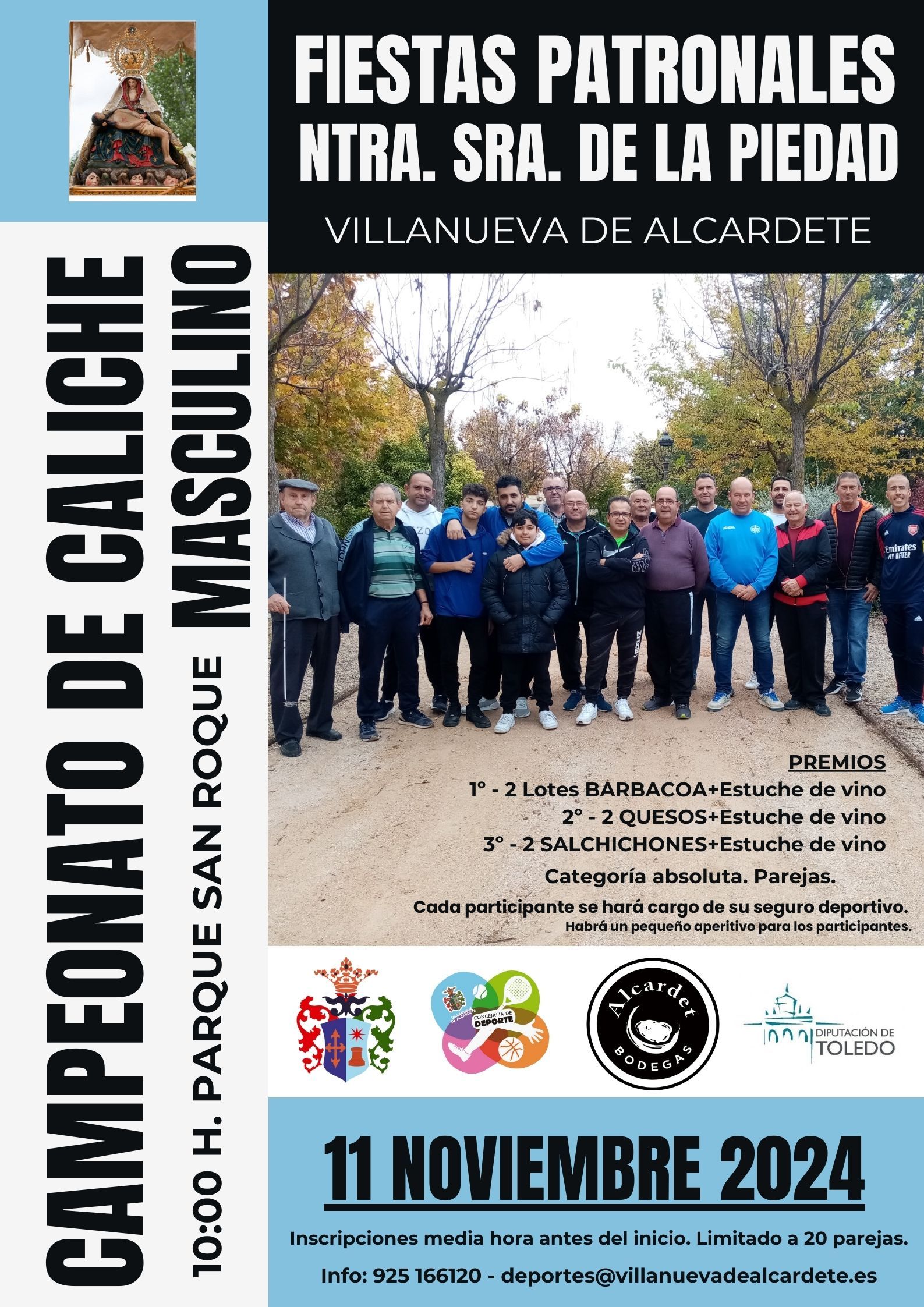 El tradicional campeonato de caliche masculino con motivo de las Fiestas Patronales en honor a la Virgen de la Piedad se celebrará el próximo 11 de Noviembre, a las 10:00 horas, en el Parque Municipal San Roque.
