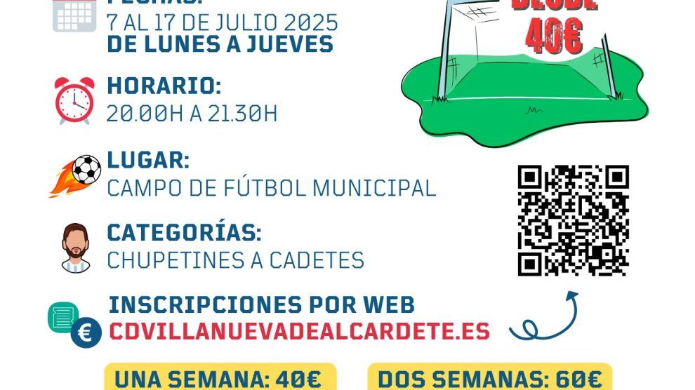 Está orientado para niños y niñas de categoría prebenjamines hasta cadete. Las inscripciones se podrán realizar en la web: www.cdvillanuevadealcardete.es hasta el 20 de Junio.