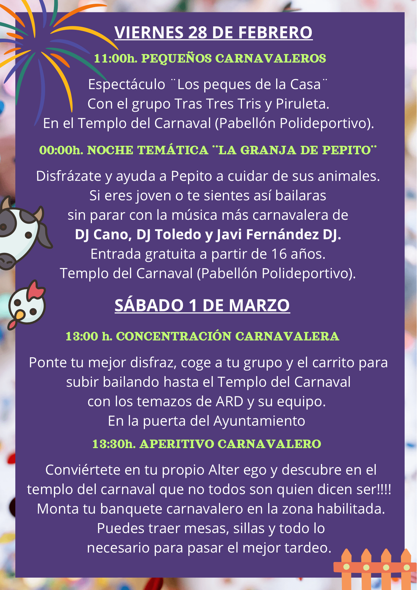 Otro año mas llega el carnaval y lo queremos festejar con vosotros y os invitamos a participar poniéndoos vuestros mejores disfraces , la temática de este año es la granja de Pepito.