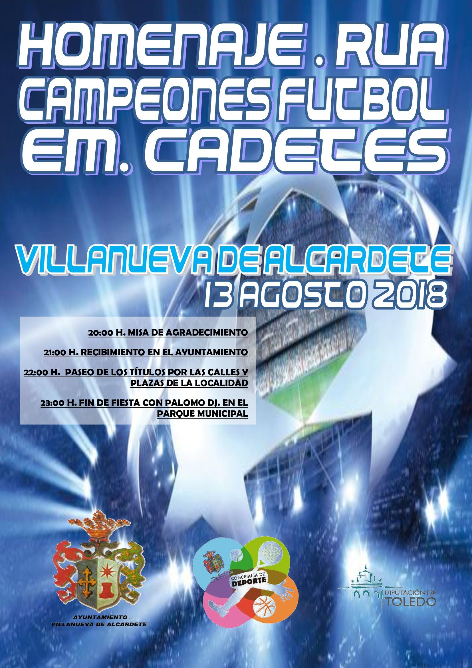 La Escuela Municipal de Fútbol Cadete, bajo la dirección de Daniel Pradillo Roldán, recibirá un merecido homenaje tras los logros y éxitos obtenidos durante la pasada temporada 2017-2018.