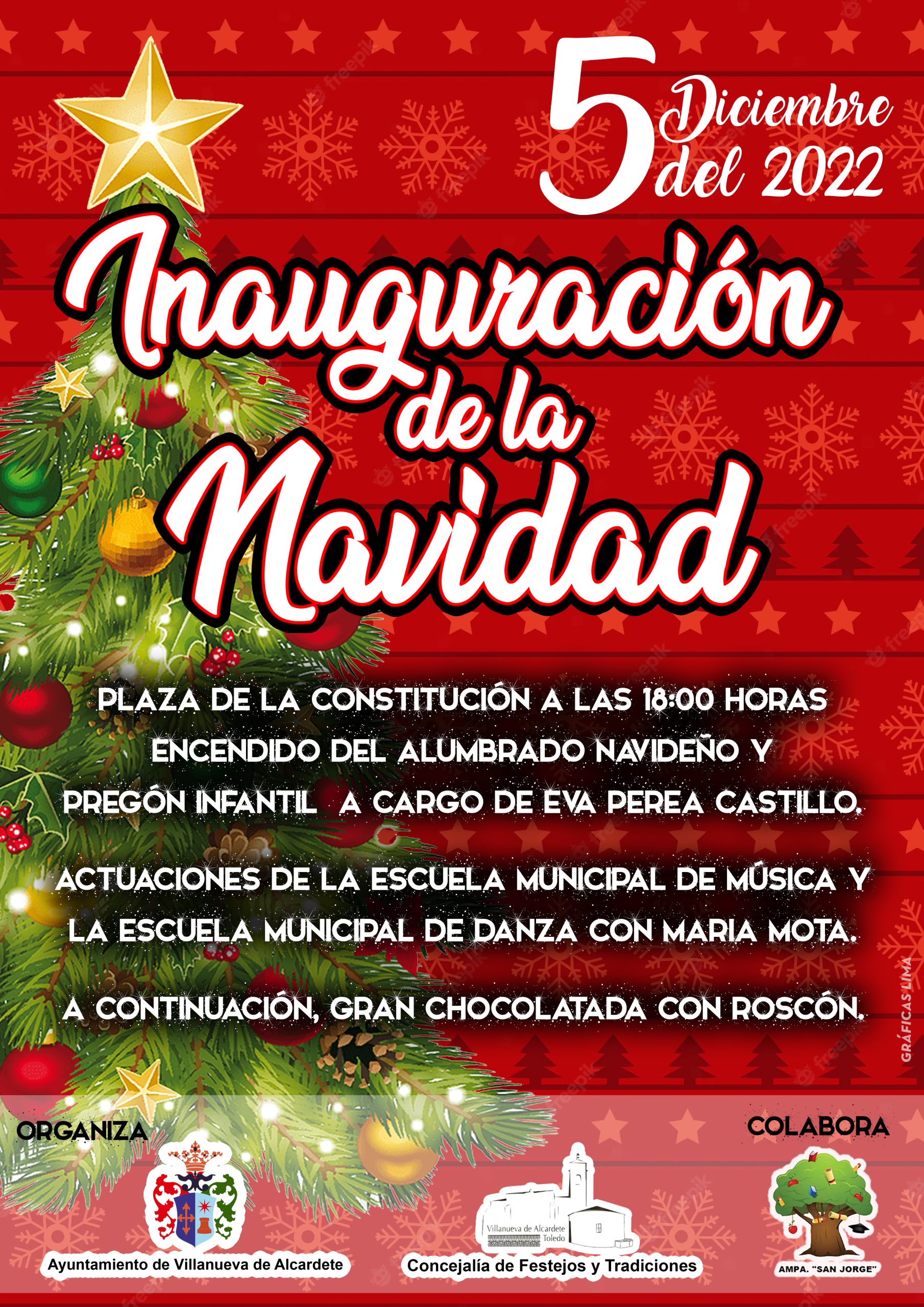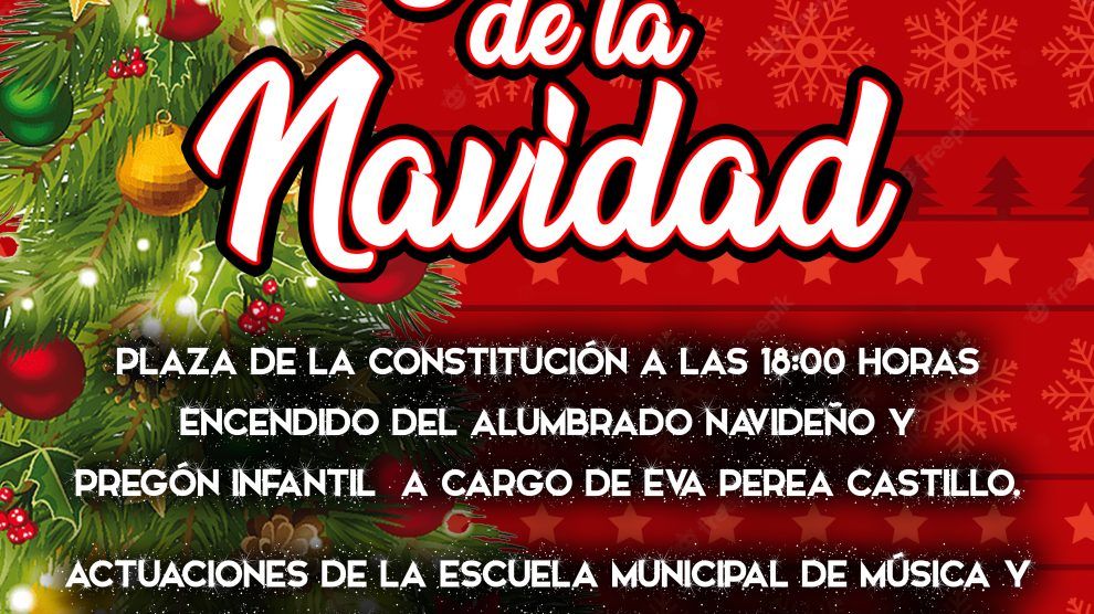 El próximo lunes 5 de diciembre te esperamos en la Plaza de la Constitución  a las 18:00 h en el acto que dará comienzo a la navidad en nuestro pueblo.