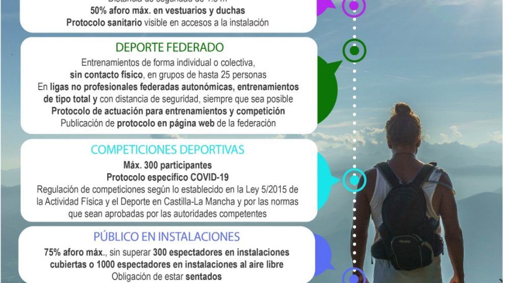 Ya están publicadas las directrices que marca la Consejería de Sanidad de la Junta de Castilla La Mancha bajo la aprobación del Ministerio de Sanidad del Gobierno de España en cuánto a la realización de actividades deportivas y otras en la “Nueva Normalidad”.