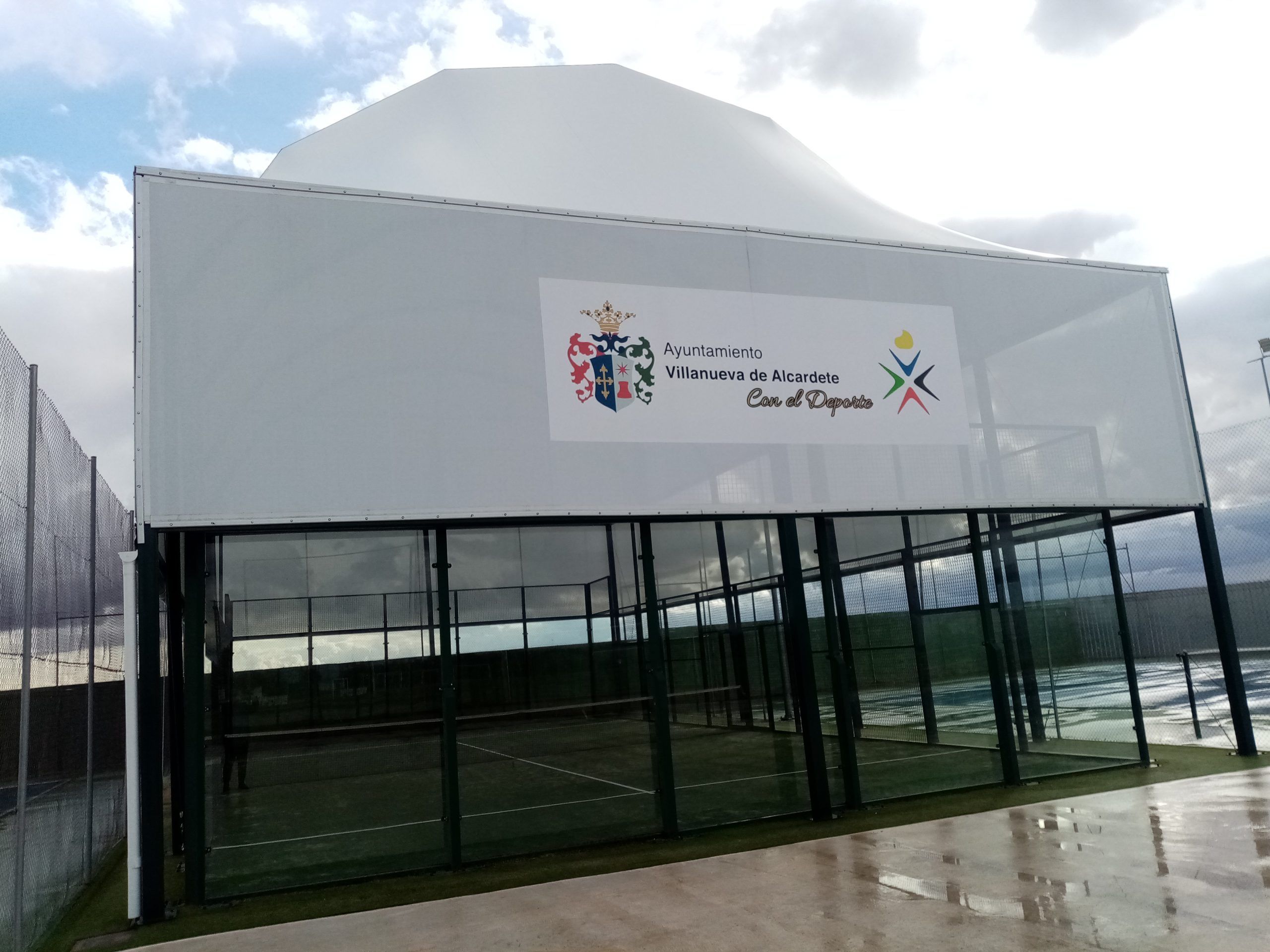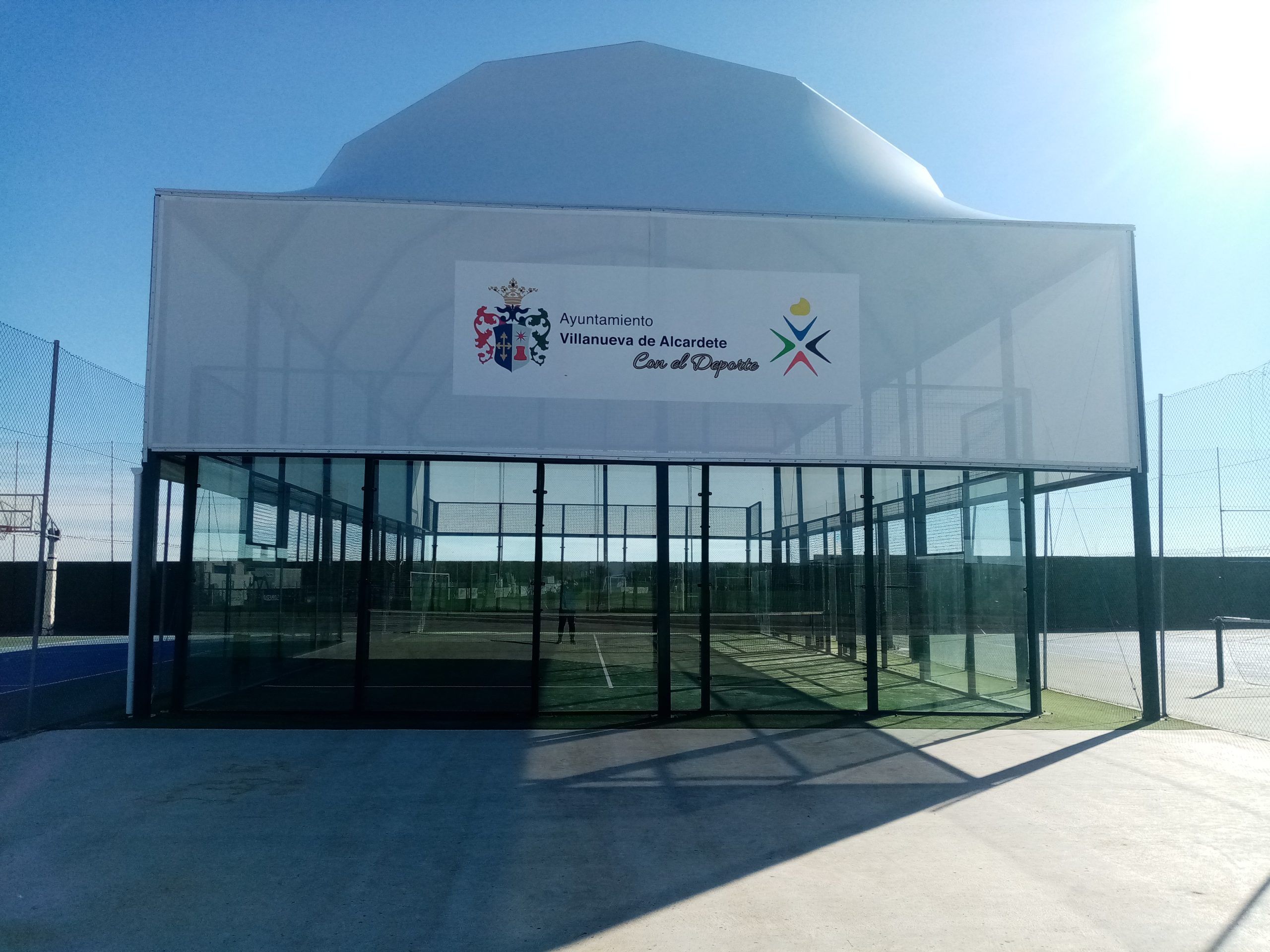 Está construida con paredes de cristal, bajo normativa europea y conforme a las medidas oficiales de pistas de este deporte. Posee una cubierta de lona homologada de última generación.