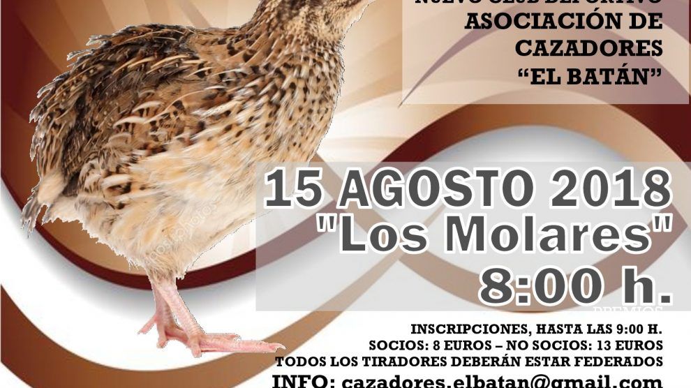 Tendrá lugar el próximo 15 de Agosto, a partir de las 8:00 horas, en el paraje denominado “Los Molares”. Organizada por el club deportivo Asociación de Cazadores “El Batán” de reciente creación, cuya presentación tendrá lugar el día del evento.