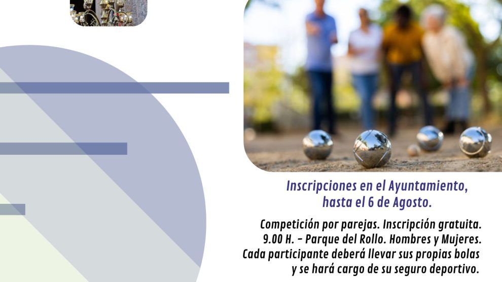 También el Domingo, 3 de Agosto, a partir de las 9:00 h. en el Parque del Rollo tendrá lugar la fase final y entrega de trofeos de la Liga Local de Petanca que se ha venido disputando durante estos últimos meses.
