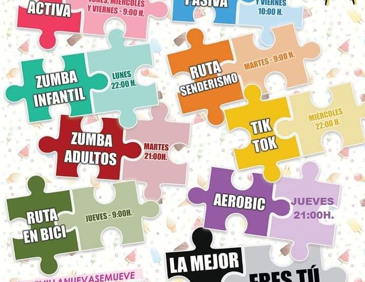Podrás hacer Zumba, Zumba infantil, Aeróbic, Gimnasia Activa, Gimnasia Pasiva, Rutas de Senderismo y Bicicleta, los bailes más famosos de tik tok…